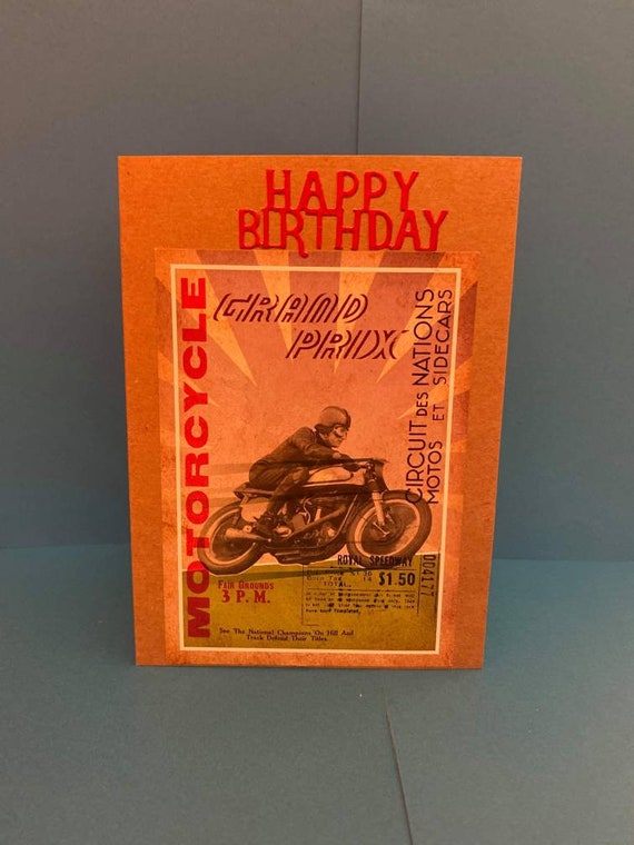Happy Birthday Card Handmade Motorbike Grand Prix Theme Etsy